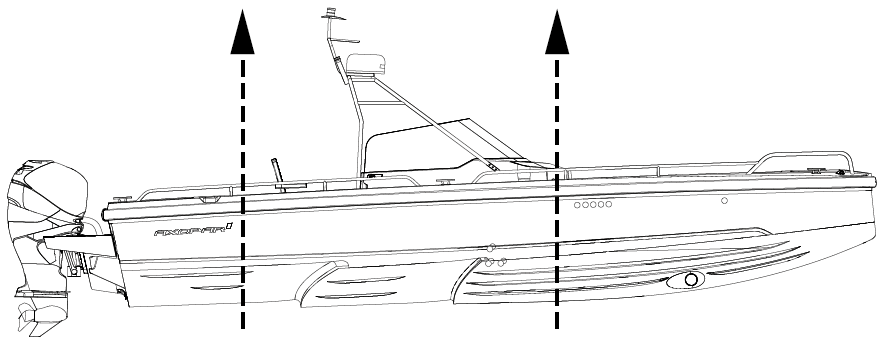 Traversen ska ha exakt samma bredd som båten. Vid lyft ska stor försiktighet iakttas nära och runt båten.