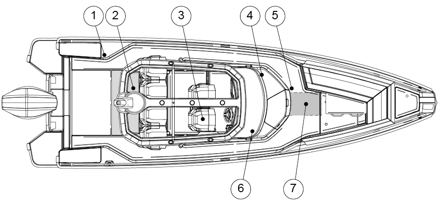 The tank is located under front deck. The pump and hydraulic accumulator are next to the tank. The fresh water tank is filled via the inlet pipe on the foredeck.