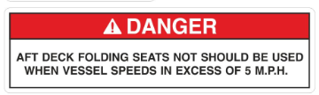 Aft deck folding seats should not be used when vessel speed exceeds 5 mph. |