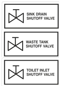 Sink drain shutoff valve Waste tank shutoff valve Toilet inlet shutoff valve |