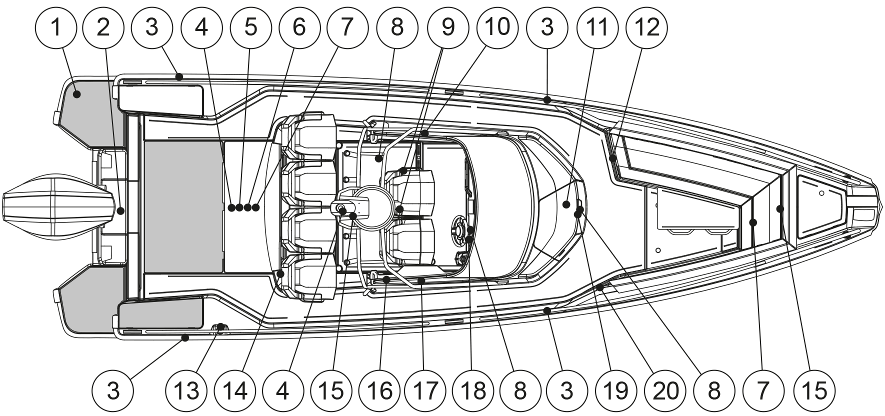 Warning Qualified operator to be in control at all times. Operation by an unqualified operator can cause loss of control. This may result in severe injury, death, or property damage. Boat stability and handling will change with weight disctribution. Read owners manual before use. |