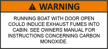 Warning Running boat with door open could induce exhaust fumes into cabin. See owners manual for instructions concerning carbon monoxide. |