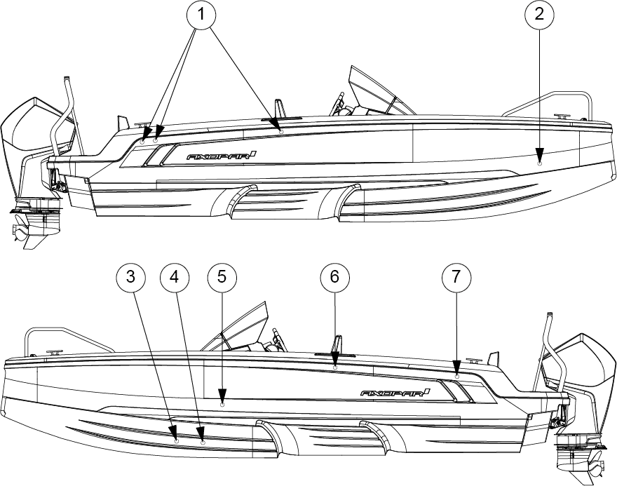 There are several inlets through the boat that include valves for opening and closing such inlets. It is recommended to keep these inlets closed if the boat is out of use for a long time, and to open them again when the boat is used again. If the boat is lifted out from water or in rainy conditions, inlets should be kept open.