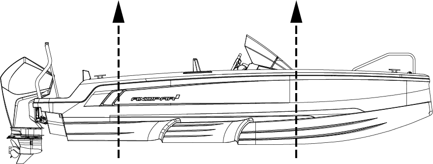 The lifting beam must be exactly the same width as the boat. Always take great precautions near and around the boat when lifting.