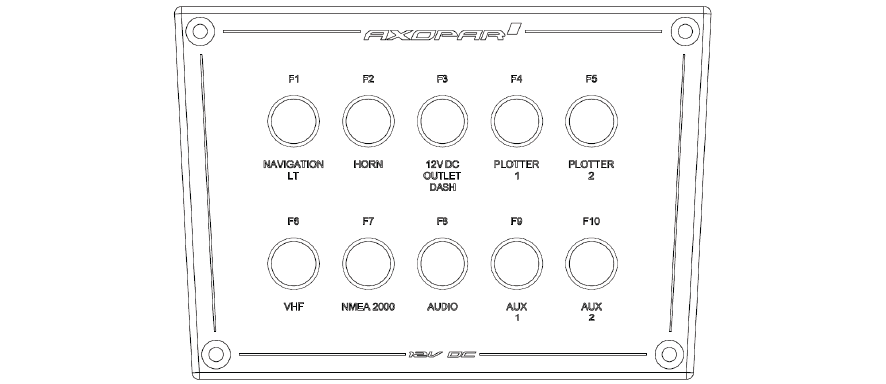 El panel tiene un interruptor combinado y un fusible para la maceradora y la bomba de agua dulce. El panel de fusibles también tiene una salida de 12V.