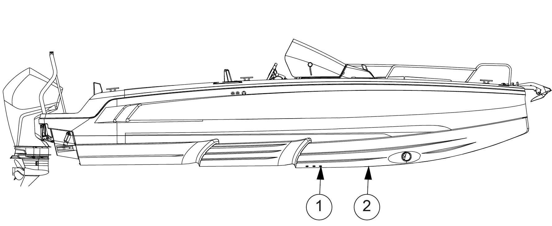 Die Abbildung zeigt die seitlichen Flutventile und Einlässe. Überprüfen Sie beim Stapellauf im Frühling immer, ob die Einlässe an der Seite und am Boden fest verschlossen sind.
