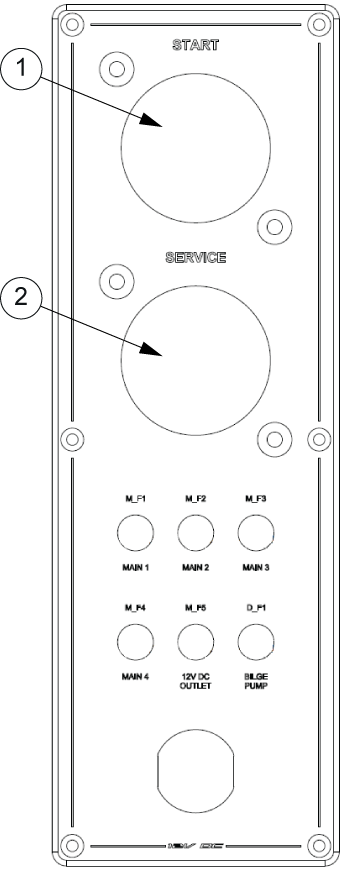 Die Konstruktionszeichnung der elektrischen Anlage des Bootes ist dargestellt im Anhang Schaltpläne. Der Hauptschalter befindet sich unter dem hinteren Sitz. In der Hauptschalttafel befinden sich Direktversorgungsschalter für kritische Geräte und Hauptschalter für die Startbatterien, die Servicebatterie und die Aux-Batterie.