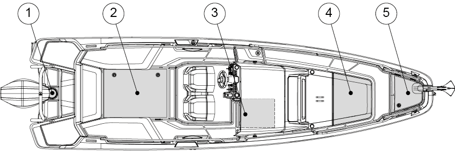Die Position und Anzahl dieser Komponenten hängen von der Ausrüstung des Bootes ab.