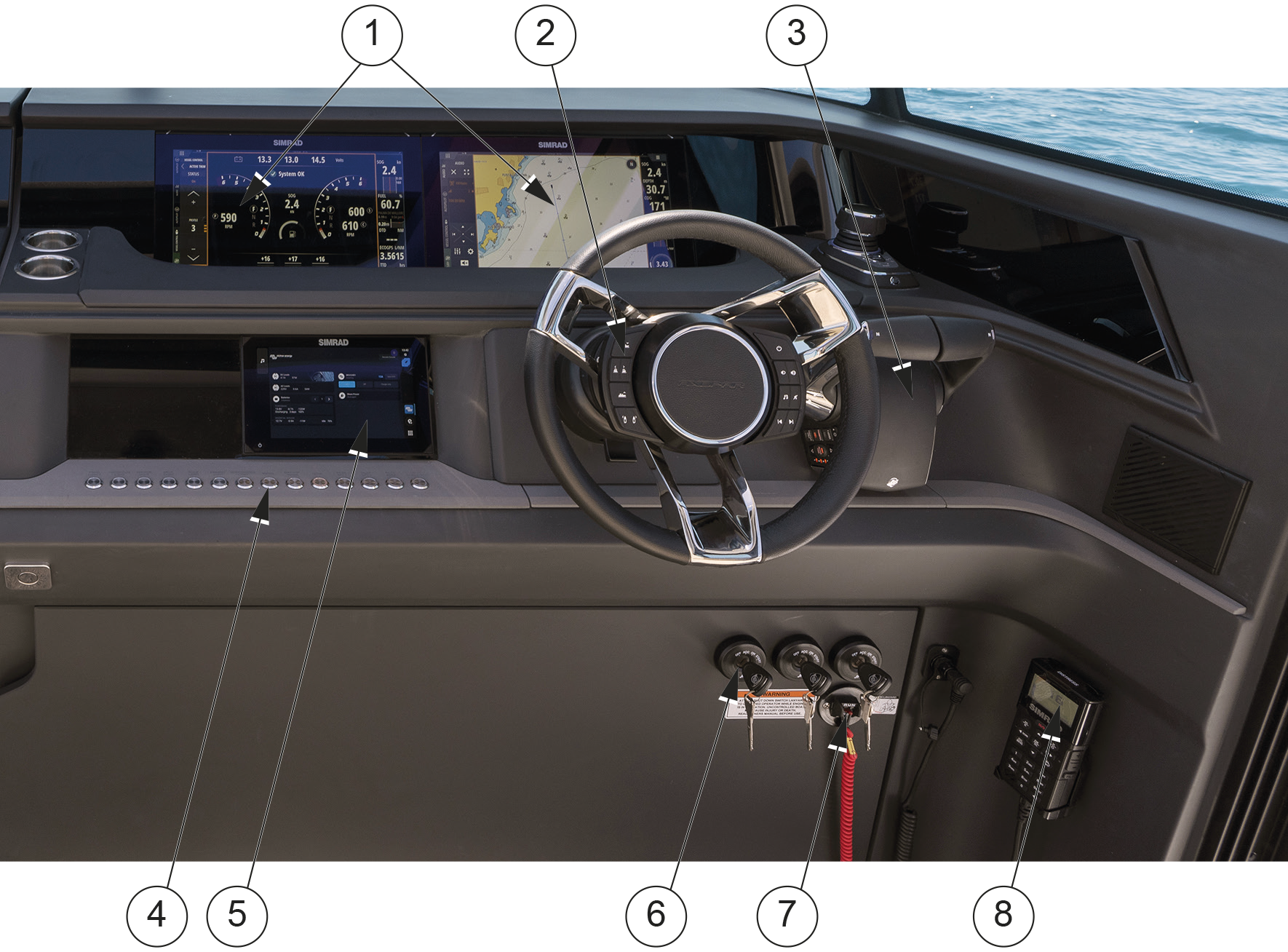 The location and quantity of the devices depend on what optional equipment and engine models have been chosen. See the device manuals for further information on the devices.