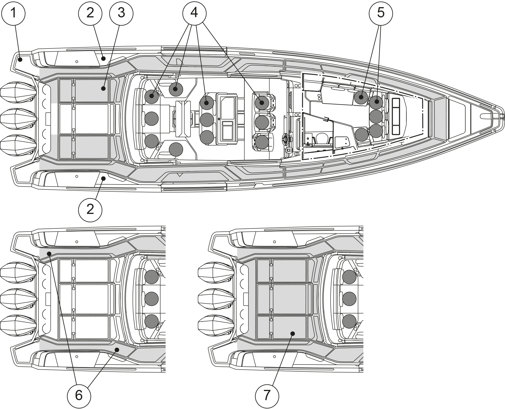 If the sun deck cushions or the front deck table are in place, observe the maximum speed of 15 knots to avoid the cushions or table detaching at speed or in high waves.