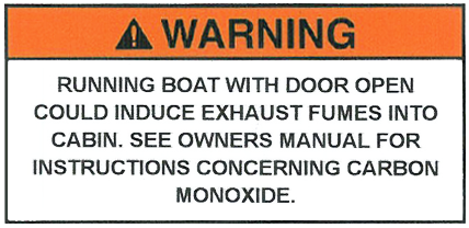 Warning Running boat with door open could induce exhaust fumes into the cabin. See the owner's manual for instructions concerning carbon monoxide. |