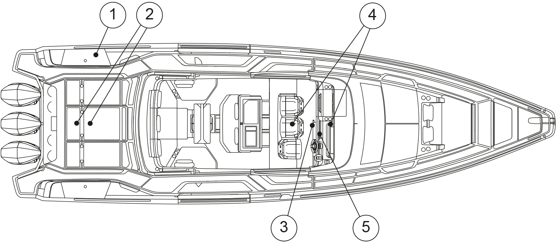 The electric bilge pumps are by default in the automatic mode and pump out the bilge once the float-switch is triggered. The electric bilge pumps can also be started manually from the boat’s main control panel.