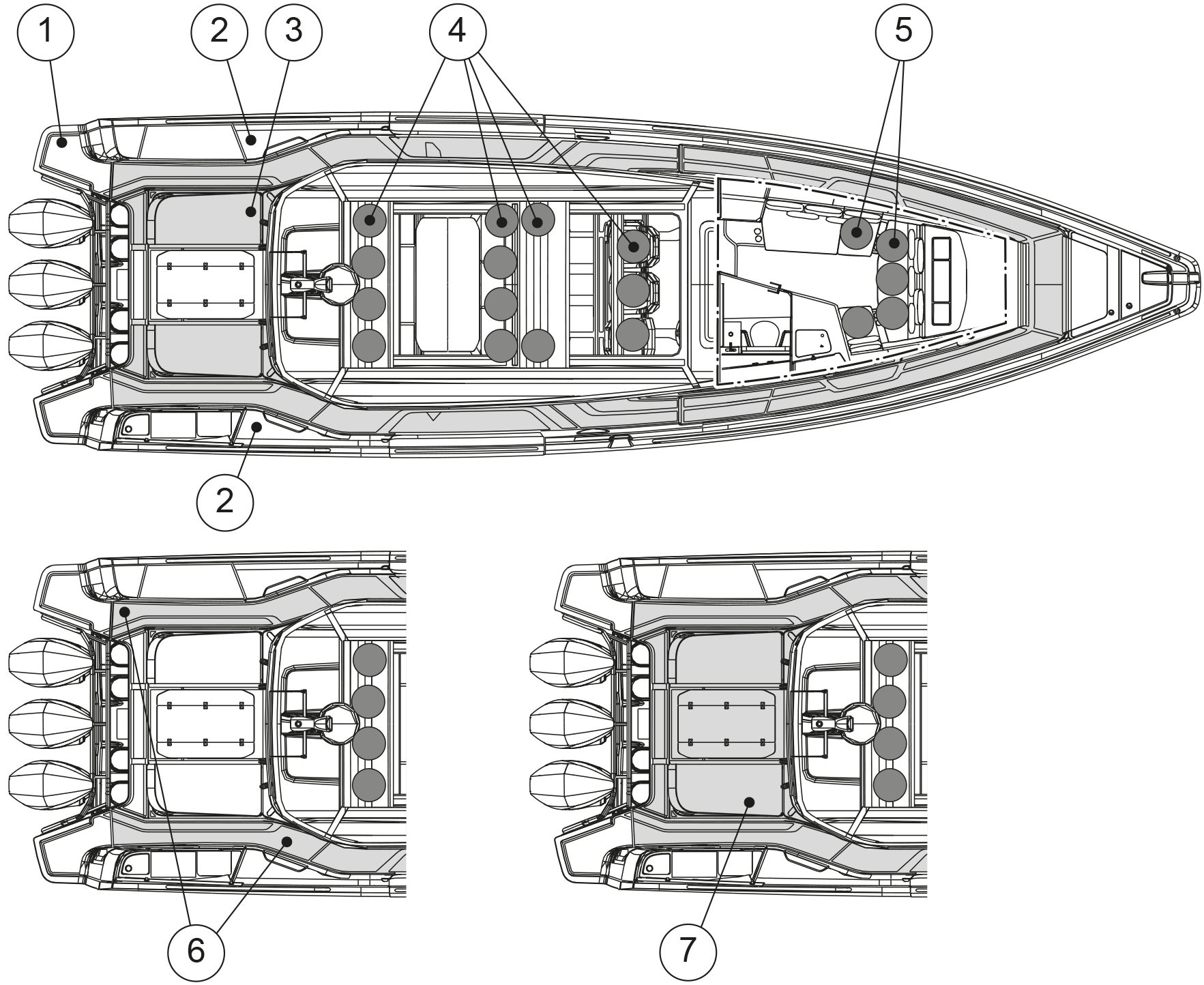 If the sun deck cushions or the front deck table are in place, observe the maximum speed of 15 knots to avoid the cushions or table detaching at speed or in high waves.