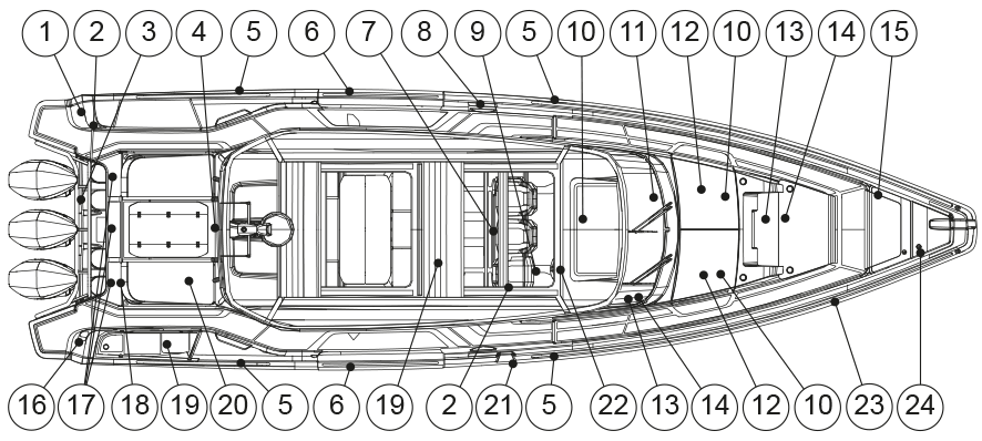 Warning Avoid personal injury. Stay inside deck rails (and gates) when boat is underway. |