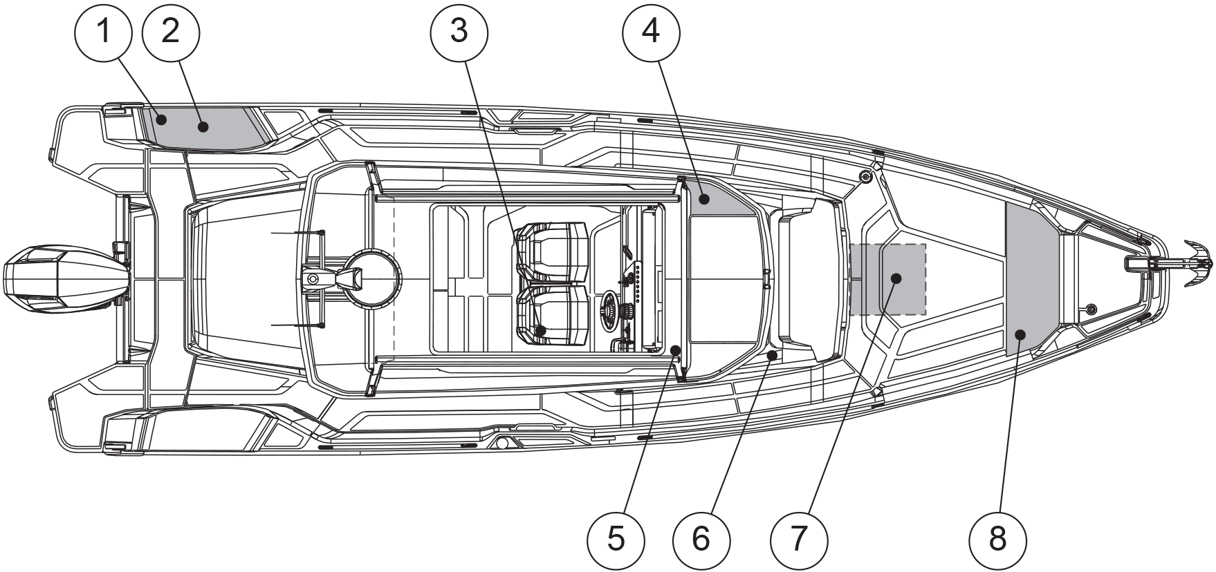 The tank is located under front deck. The freshwater tank is filled via the inlet pipe on the foredeck.