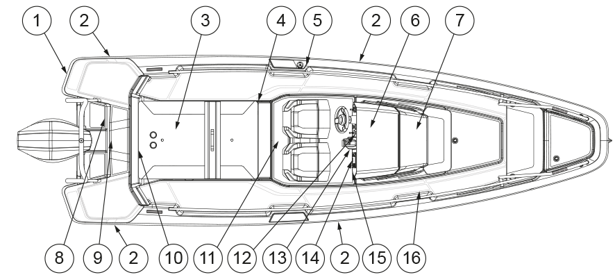 Warning Qualified operator to be in control at all times. Operation by an unqualified operator can cause loss of control. This may result in severe injury, death, or property damage. Boat stability and handling will change with weight distribution. Read owners manual before use. |