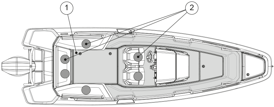If the sun deck cushions or the front deck table are in place, observe the maximum speed of 15 knots to avoid the cushions or table detaching at speed or in high waves.