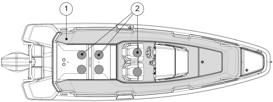 If the sun deck cushions or the front deck table are in place, observe the maximum speed of 15 knots to avoid the cushions or table detaching at speed or in high waves.