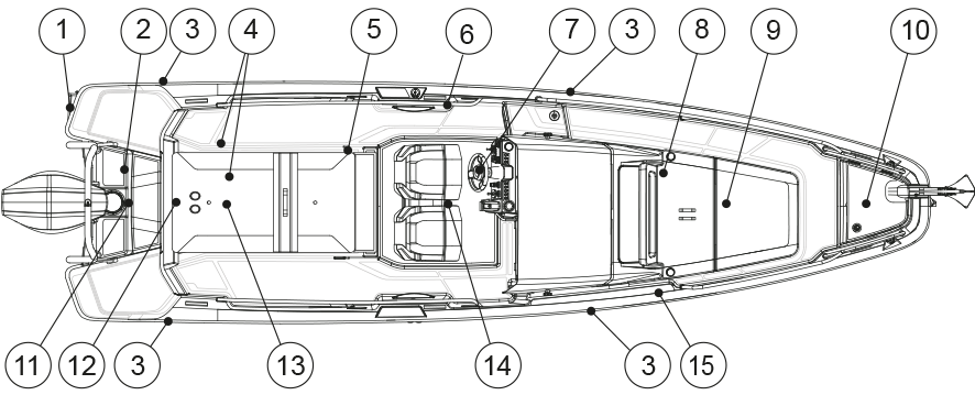 Warning Qualified operator to be in control at all times. Operation by an unqualified operator can cause loss of control. This may result in severe injury, death, or property damage. Boat stability and handling will change with weight distribution. Read owners manual before use. |