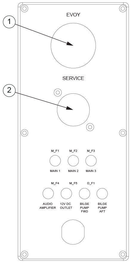 Current feed to the motor is achieved by turning the motor systems (Evoy) switch to the On position, and feed to other equipment is achieved by turning the service switch to the On position.