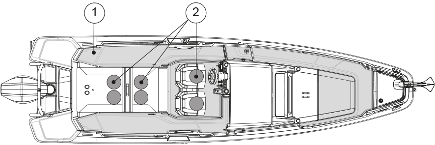 If the sun deck cushions or the front deck table are in place, observe the maximum speed of 15 knots to avoid the cushions or table detaching at speed or in high waves.