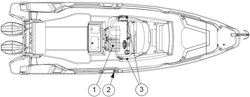 The fuel tank is located in the middle of the keel. Prevent damage to the fuel lines.