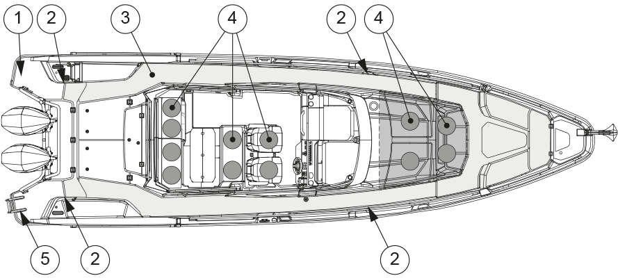 Båten är utrustad med fästpunkter för säkerhetssele. Om du behöver arbeta på däck i hög sjö rekommenderas det att bära flytväst med sele och använda en livlina.