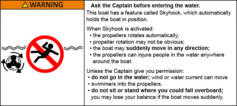 Fråga kaptenen innan du går ned i vattnet Båten har en Skyhook-funktion som automatiskt håller båten på plats. När Skyhook är aktiverad: