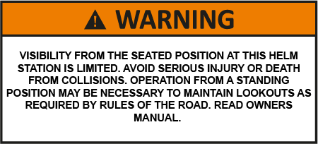 Varning Sikten i sittande position vid denna styrstation är begränsad. Undvik allvarliga skador eller dödsfall på grund av kollisioner. Du kan behöva styra i stående position för att hålla utkik, enligt vad som krävs i trafiklagen. Läs ägarens handbok. |