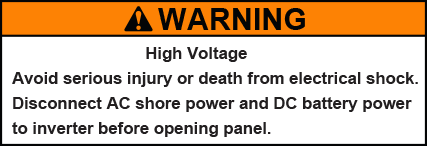 Varning Högspänning Undvik allvarliga skador eller dödsfall på grund av elchock. Koppla bort växelström från land och likström från batteriet till växelriktaren innan du öppnar panelen. |
