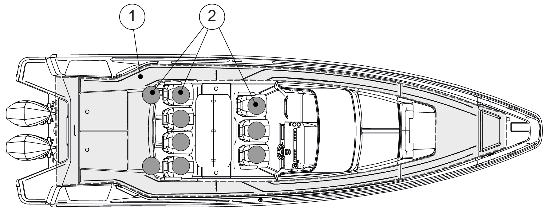If the sun deck cushions or the front deck table are in place, observe the maximum speed of 15 knots to avoid the cushions or table detaching at speed or in high waves.