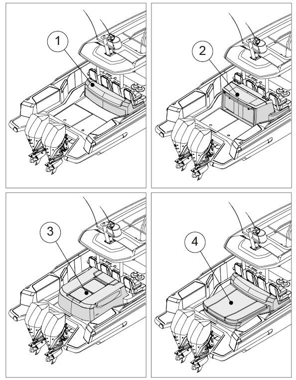 The boat has several deck options. The layout of the equipment and the technical components may vary depending on the selected accessories.