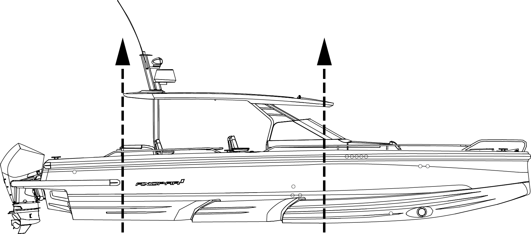 Kontrollera tillbehören som går genom skrovet såsom knopmätare och stabilisatorer samt sprut- och stänkskydd så att dessa inte skadas av lyftutrustningen.