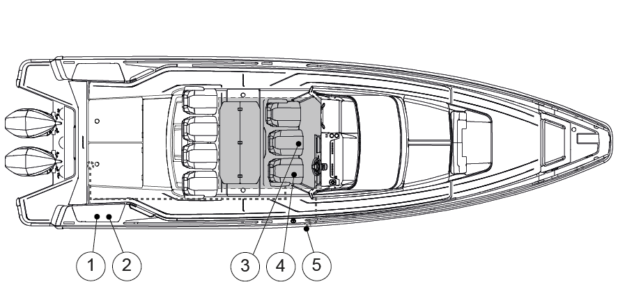Kom ihåg att det inte är tillåtet att förvara bränsle i utrymmen som inte utformats för detta ändamål. Eftersom det inte finns ventilerade förvaringsutrymmen i båten ska eventuella reservbränsletankar förvaras på däck.