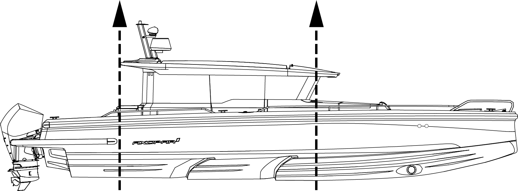The lifting beam must be exactly the same width as the boat. Always take great precautions near and around the boat when lifting.
