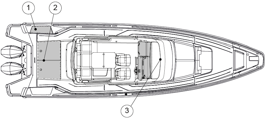 The electric bilge pumps are submersible. One electric bilge pump is located under the berth of the aft cabin or under the storage hatch and another under the front cabin floor. The electric bilge pumps are by default in automatic mode and pump out the bilge once the float-switch is triggered. The electric bilge pumps can also be started manually from the boat’s main control panel.
