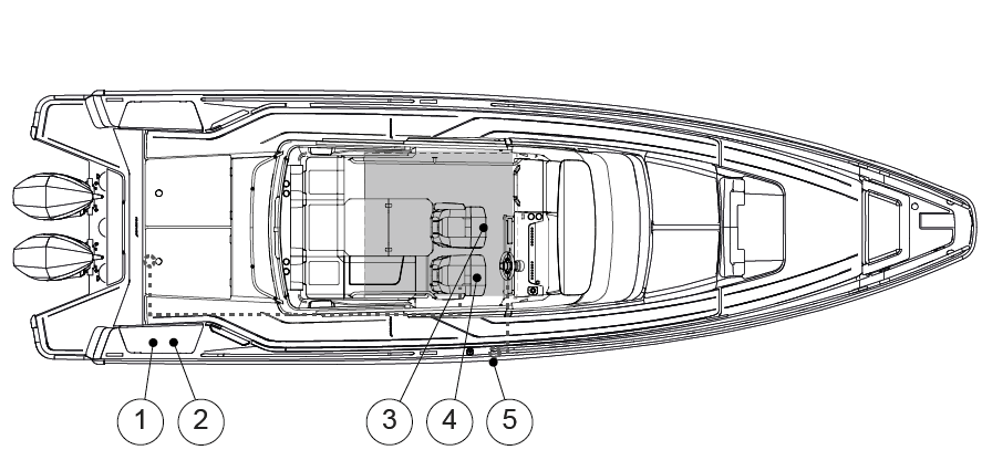 Kom ihåg att det inte är tillåtet att förvara bränsle i utrymmen som inte utformats för detta ändamål. Eftersom det inte finns ventilerade förvaringsutrymmen i båten ska eventuella reservbränsletankar förvaras på däck.